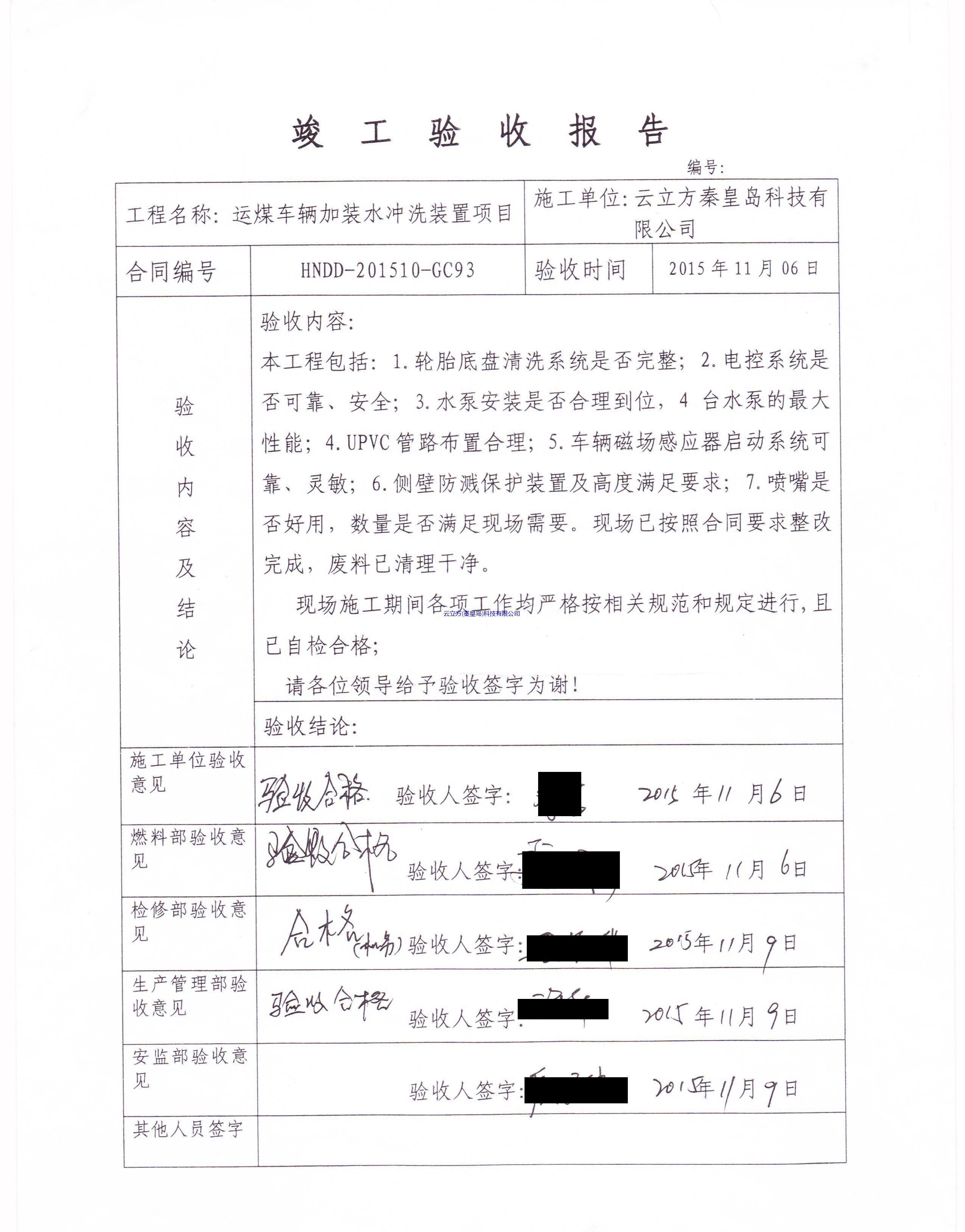 由云立方秦皇岛科技有限公司承接的华能云南滇东能源有限责任公司车轮清洗系统项目顺利通过验收。